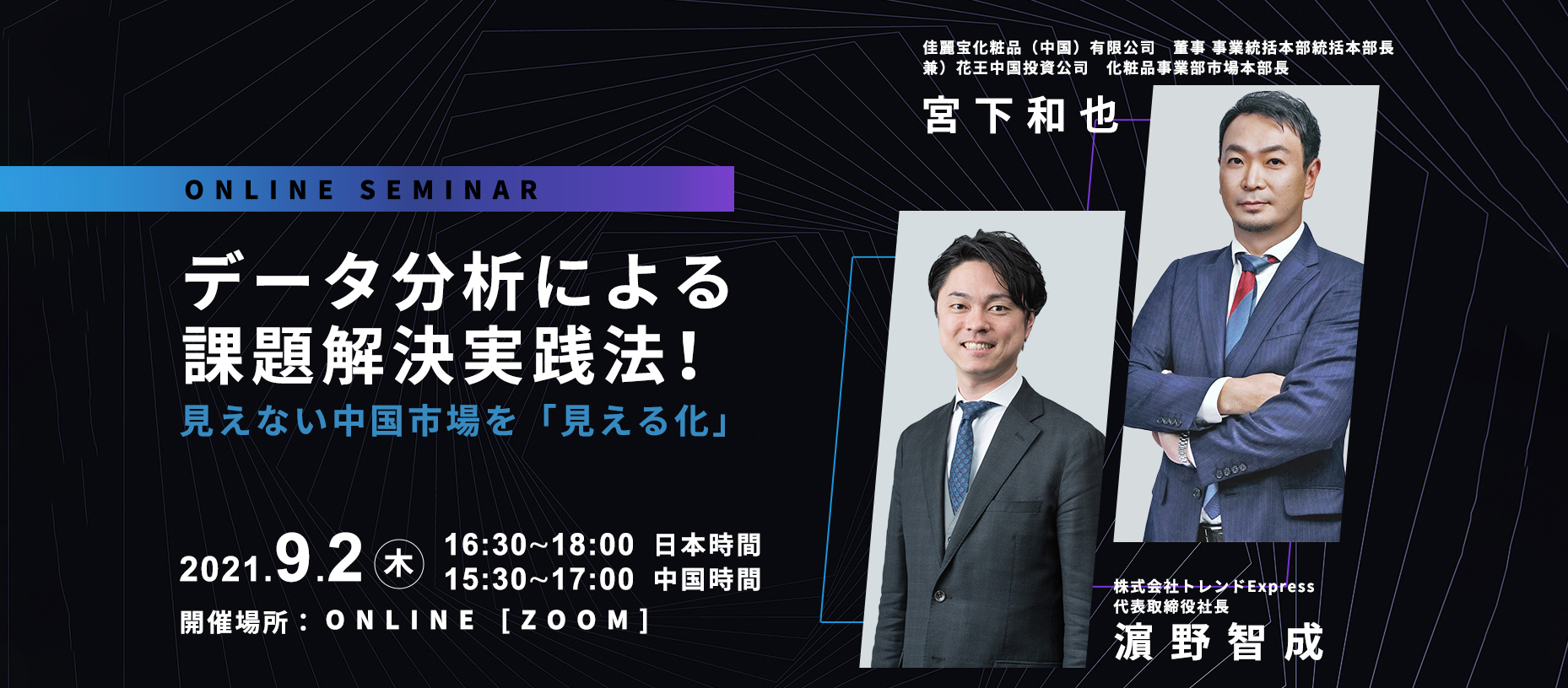 NOVARCAでは、2021年9月に「見えない中国市場を「見える化」 データ分析による課題解決実践法!」と題したオンラインセミナーを開催。佳麗宝化粧品(中国)有限公司(カネボウ中国) 董事 事業統括本部統括本部長 兼)花王中国投資公司 化粧品事業部市場本部長の宮下和也様(以下、敬称略)に登壇いただき、中国マーケティングにおけるデータの活用法についてお話しいただきました。