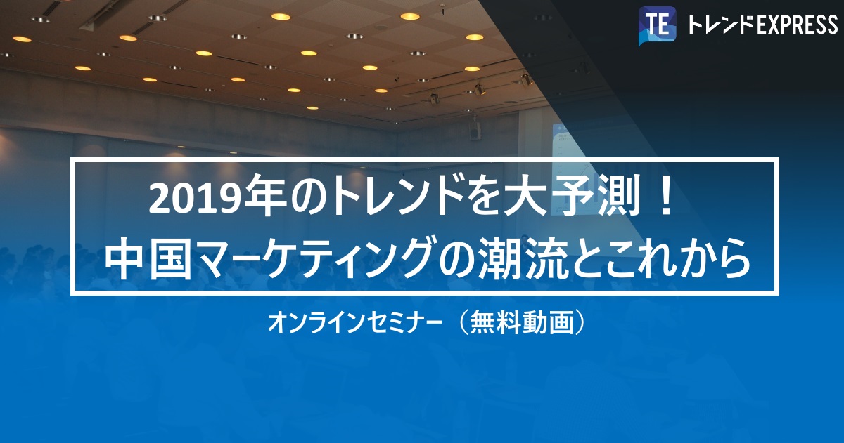 受付終了オンライン開催2019.02.21 16:30〜【視聴無料】オンラインセミナー受付開始!2019年のトレンドを大予測!中国マーケティングの潮流とこれから詳しく見る