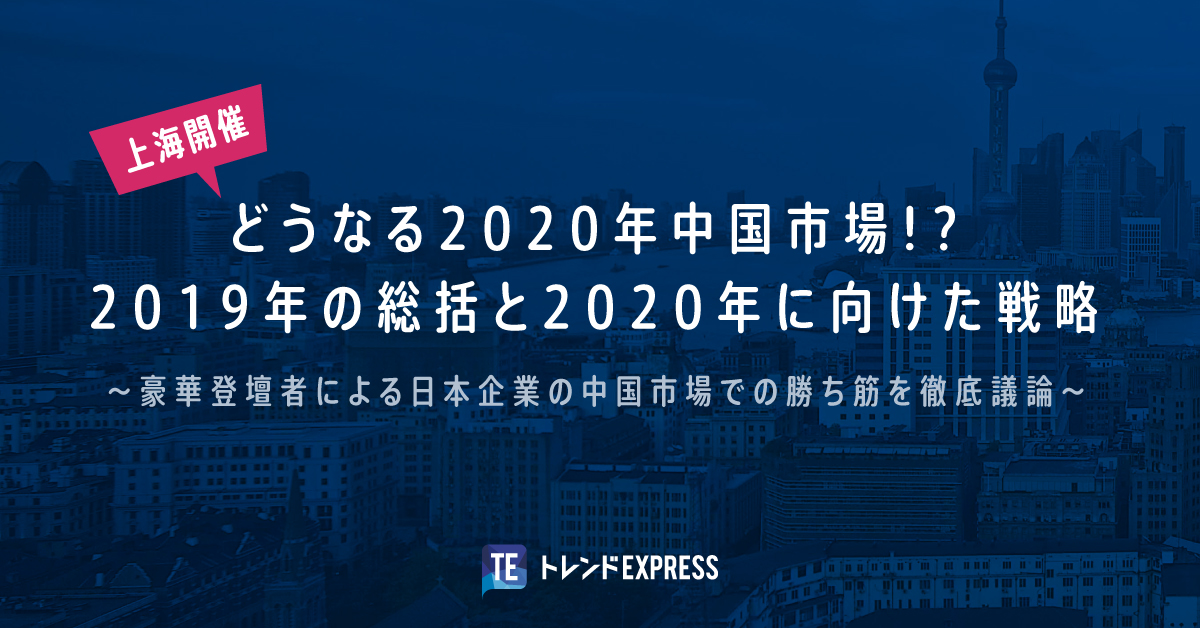 受付終了セミナー情報2019.12.06 16:00〜【上海開催・完全抽選制】どうなる2020年中国市場!?2019年の総括と2020年に向けた戦略 ~豪華登壇者による日本企業の中国市場での勝ち筋を徹底議論~詳しく見る