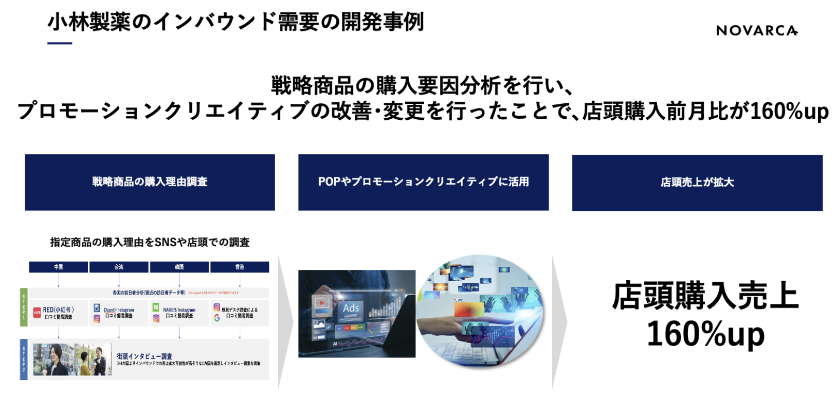 • NOVARCA Inboud Reseach活用したターゲット国消費者の購入インサイトを発掘